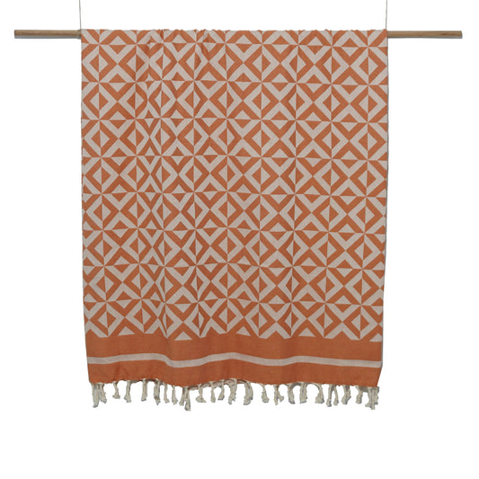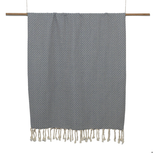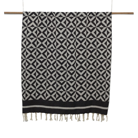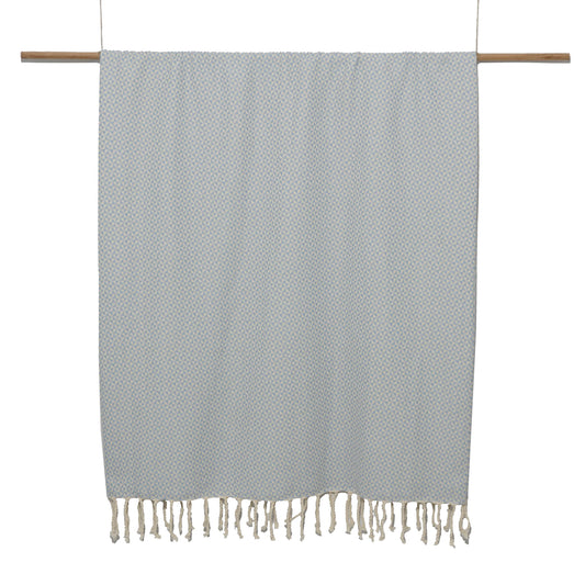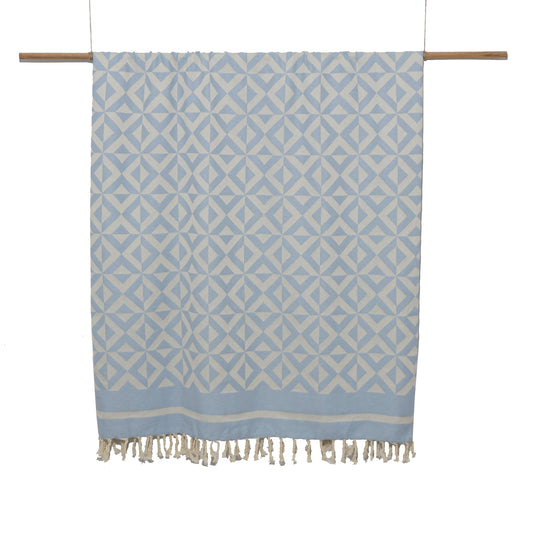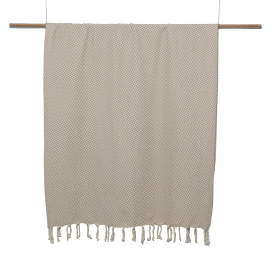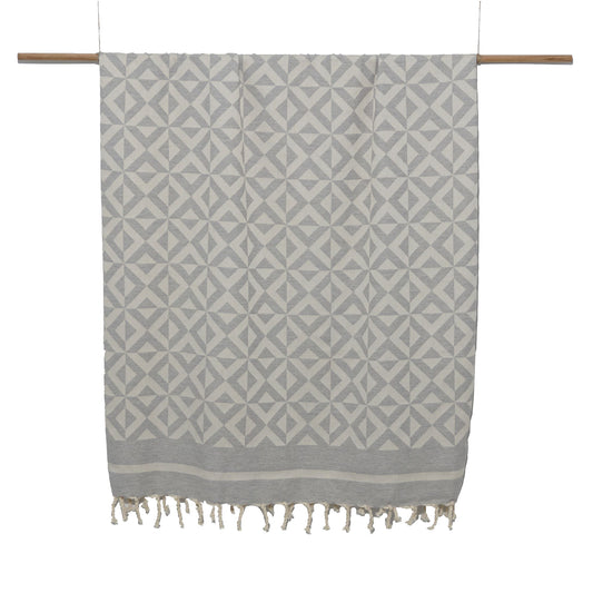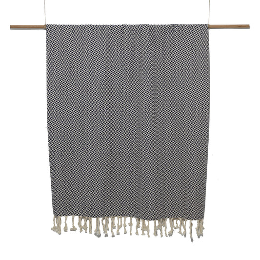 We have two models in our Luxe collection,First the Geometric and secondly the Sablier.The Geometric design is made on a jacquard loom and takes a lot longer to weave than a traditional fouta but the results are amazing,this towel is super soft and absorbent.A favourite of Interior designers.